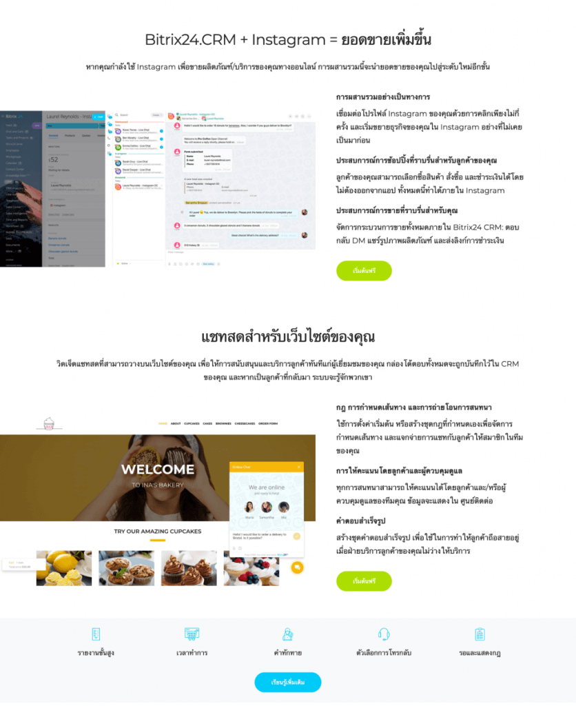 • แชท : ลูกค้าสามารถแชทกับตัวแทนฝ่ายบริการลูกค้าผ่าน Bitrix24 Chat แชทสามารถจัดกลุ่มตามทีม แผนก หรือโครงการ ลูกค้ายังสามารถแชร์ไฟล์และลิงก์ได้อีกด้วย