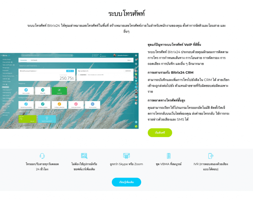 นอกจากนี้ Bitrix24 Contact Center ยังมีฟีเจอร์อื่นๆ อีกมากมาย เช่น การจัดการการติดต่อ การวิเคราะห์ข้อมูล และการสร้างรายงาน